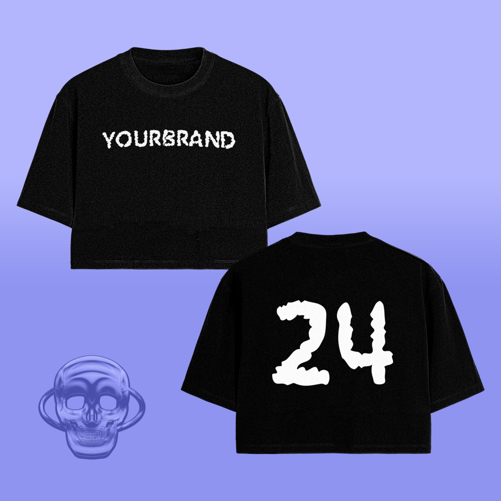 This product is a mockup of a CROP TEES, showing how a product might be sold online. typically employed by apparel brands to show customers how the design appears in a realistic facsimile.
